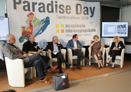 (Villach)  Das erste Tourismusforum im Rahmen der Toleranzgespräche war den "Grenzen des Wachstums" und der "Überwindung der Schwerkraft - Wie wir morgen reisen" gewidmet. Es wurde mit einer Keynote der Hamburger Trendforscherin Birgit Gebhardt eröffnet, die über die virtuellen Welten und die wiederzuentdeckende "Tuchfühlung" sprach. Der Salzburger Tourismusforscher Kurt Robert Luger sprach über die zerstörerischen Auswirkungen fehlgeleiteter Touristenströme. Den Part der Schwerelosigkeit durch künftig mögliche Reisen ins All übernahmen die Weltraumforscher Bruno Besser und René Waclavicek.