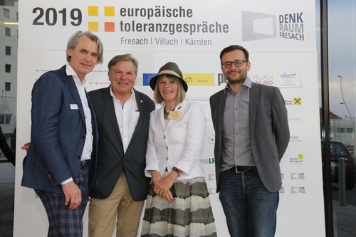 (Villach)  Prominenz aus Politik, Wirtschaft und Kultur versammelte sich Mittwoch abend zum Empfang von Landeshauptmann Peter Kaiser und Bürgermeister Günther Albel anlässlich der Europäischen Toleranzgespräche 2019 im Holiday Inn Villach. Der Präsident des Kuratoriums, Hannes Swoboda, und Superintendent Manfred Sauer, Obmann des Veranstalters Denk.Raum.Fresach, begrüßten die Gäste mit einer Vorschau auf das Programm, das in diesem Jahr dem Thema "Heimat Fremde Erde, Wem gehört Europa?" gewidmet ist.