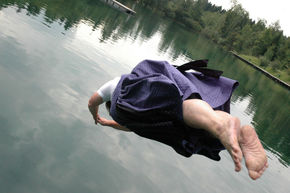 Das Gwandhaus Gössl veranstaltete im Waldbad-Anif eine Dirndl-Flugschau. Mutige Damen waren aufgefordert in geliehenen Gössl Dirndlkleidern ins kalte Wasser zu springen. Die originellsten Sprünge wurden mit Preisen belohnt.