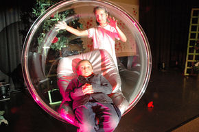 Boris Randzio und Felix Strasser spielten heute im Café Siebenstern ihr aktuelles Programm "Zitatnost-ein Fußnotendrama". Unter der Verwendung einer Leiter und einer Nussbaumtorte spielten sie in 90 Minuten Dialoge, Monologe und Miniaturen von bekannten Autoren und Dichtern.