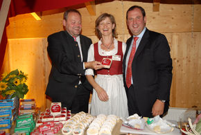 Mittwoch Abend zeichnete Bundesminister Pröll beim Genussfest auf der Rieder Messe mit dem Schlierbacher Geflügel und dem Innviertel Surspeck zwei weitere Oberösterreichische Genuss Regionen aus. Weiters gratulierten Heinz Pöttinger von der Allianz für starke Regionen, Landesrat Josef Stockinger und AMA-Geschäftsführer Stephan Mikinovic. Für die Prämierung als GENUSS REGION ÖSTERREICH ist Voraussetzung, dass der Rohstoff für die Spezialitäten aus der Region stammt und auch dort verarbeitet wird. Durch die Verknüpfung der Lebensmittel mit ihrem regionalen Ursprung und der Produktionsweise wird der Zusammenhang zwischen Kulturlandschaft und Lebensmittelproduktion transparent gemacht.