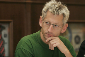 Zdenek Sykora wurde 1920 geboren und lebt derzeit in Louny in Tschechien. Er zählt zu den führenden Repräsentanten abstrakt-konstruktiver Kunst und zu den bedeutendsten Malern der zweiten Hälfte des 20. Jahrhundert in Tschechien. International gehört er zu den Pionieren der Einbeziehung neuer Technologien in die künstlerische Arbeit, ohne ihnen eine beherrschende Rolle im künstlerischen Prozess zuzuweisen. Landeshauptfrau Gabi Burgstaller überreichte ihm den Preis der 'Freunde des Museums der Moderne'.