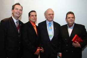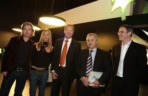 Anlässlich der Erweiterung bei XAL, präsentiert die KNAPP-Gruppe weltweit erstmals ihr revolutionäres Lagerautomationssystem SPIDER. Ein ungewöhnliches, synergienbringendes Projekt, das Verbindungen zwischen Design/Architektur und innovativer Lagerlogistik zu schaffen vermag. Mag. Michael Engel (XAL-Geschäftsführung), DI Eduard Wünscher und DI Karl Freudelsperger (KNAPP-Geschäftsführung) leiteten die Präsentation.