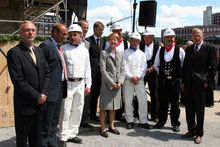 Auf einer Fläche von 75.000 Quadratmetern soll die Shopping-Mall "Tempelhofer Hafen" in Zukunft Kultur, Einzelhandel und Gastronomie einen Platz bieten und Kauflustige anziehen. Beim Richtfest, das seinen Höhepunkt im traditionellen Setzen des Richtkranzes fand, stellte Christian Diesen, Geschäftsführer der Grundstücksgesellschaft Objekt Tempelhofer Hafen und der HLG Projektmanagement GmbH & Co. KG, das Bauvorhaben dar. Grußworte kamen u.a. von Senatsbaudirektorin Regula Lüscher und Baustadtrat Bernd Krömer.