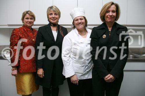 Die luxemburgisch-šsterreichische Gesellschaft und die luxemburgische Botschaft luden zu einem exklusiven Diner mit Sternekšchin Lea Linster ins Wiener Modul ein. Foto vlnr: Anita von Hohenberg, Ginette Griesbach (PrŠs. d. luxemburgisch-šsterreichischen Gesellschaft), Lea Linster, Botschafterin Arlete Conzemius: