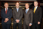 "Regionaler Klimawandel und die potenziellen Auswirkungen auf den Wirtschaftsstandort …sterreich".Foto v.li.na.re Mag.Peter Niederleithner (GF Raiffeisen Informatik Consulting GmbH) ; Dr.Mag.Herbert Formayer ; Dir.Mag.Wilfried Pruschak (GF Raiffeisen Informatik GmbH); Josef Rabacher (GF Raiffeisen Informatik Consulting GmbH).©fotodienst/Nadine Bargad: