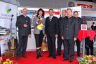 Beschreibung: "Allianz für starke Regionen" gratuliert ausgezeichneten Genussregionen: Foto v.l.n.r.: DI Rudolf Hinterberger (Vertriebsleiter Österreich Steyr), Barbara Denk (Moderatorin), Josef Pröll (Unser Lebensminister), Ing. Andreas Klauser (Business Director Österreich/Zentraleuropa), DI Hans Jochen Kessler (GF Werk St. Valentin), Ing. Manfred Rinner (Marketing)