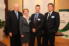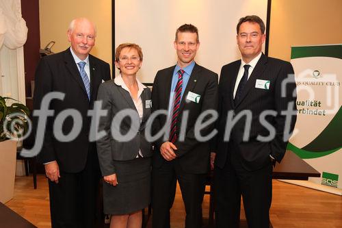 Beschreibung: (c) fotodienst/Katharina Schiffl - Wien, am 21.05.2012 - Die SQS veranstaltet den SQS Quality Club im Zentrum von Wien unter dem Motto "Qualität verbindet". Im Rahmen dieser Veranstaltung gehen etwa zehn CIOs österreichischer Großunternehmen der Frage nach, was Themen wie Managed Services inklusive Business Process Outsourcing, Cloud Computing oder global verteilte Geschäftsprozesse gemein haben. Michael Busch, CIO des Hamburger Hafens, wird dieses Thema zur Diskussion stellen. FOTO Dipl.-Kfm. Rudolf van Megen, CEO SQS Software Quality Systems AG; Sylvia Resetarits. Geschäftsführerin SQS Software Quality Systems GmbH; Mag. (FH) Johannes Kreiner, Geschäftsführer SQS Software Quality Systems GmbH; Diederik Vos, COO SQS Software Quality Systems AG.: