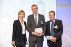 Beschreibung: Im Rahmen der DIRK-Gala wurden Dienstag abend, 2. Juni, in Frankfurt die Deutschen Investor Relations Preise 2015 vergeben. Im Bild: Corinna Wohlfeil, ntv; Bernhard Wolf, GfK SE und Kay Bommer, DIRK - Deutscher Investor Relations Verband