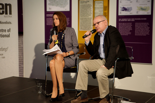 Beschreibung: Dr. Sonja Sagmeister (ORF-Redakterutin) und Dr. Bernhard Perchinig (International Centre for Migration Policy Development)