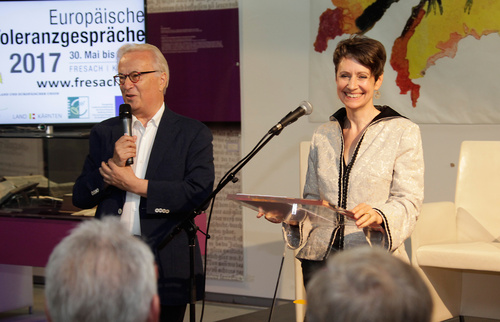 Beschreibung: Der Unternehmerinnentag am 2. Juni bei den Europäischen Toleranzgesprächen im Bergdorf Fresach stand ganz im Zeichen der Freiheit in der Wirtschaft, Freihandel, Freie Märkte und Freiheit des Unternehmertums. Im Bild: INFINEO-CEO Sabine Herlitschka und DRF-Präsident Hannes Swoboda.
