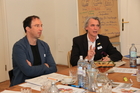 Beschreibung: "Heimat Fremde Erde - Wem gehört Europa" ist das Motto der Toleranzgespräche 2019, die vom 5. bis 8. Juni 2019 zum fünften Mal im Kärntner Bergdorf Fresach stattfinden. Die Organisatoren und Kooperationspartner haben am Dienstag in Klagenfurt die 5. Auflage des Dialogforums vorgestellt. Im Bild: DRF-Vize Peter Nageler und Fresach-Programmverantwortlicher Wilfried Seywald.