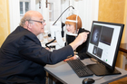 Beschreibung: (c) fotodienst/Anna Rauchenberger - Wien, am 10.03.2020 – Pressekonferenz zum Weltglaukomtag 2020 Trotz Forschungserfolgen kann nur regelmäßige Vorsorge irreversible Schäden verhindern. FOTO: OA Dr. Anton Hommer, FA für Augenheilkunde und Optometrie, Oberarzt an der Augenabteilung der Krankenanstalt "Sanatorium Hera", langjähriges Vorstandsmitglied der Europäischen Glaukomgesellschaft, Vorsitzender der Glaukom-Kommission der Österreichischen Ophthalmologischen Gesellschaft, .Chris Lohner, Schauspielerin, Moderatorin, Autorin, bei der Untersuchung des Sehnervs mit dem OCT.: