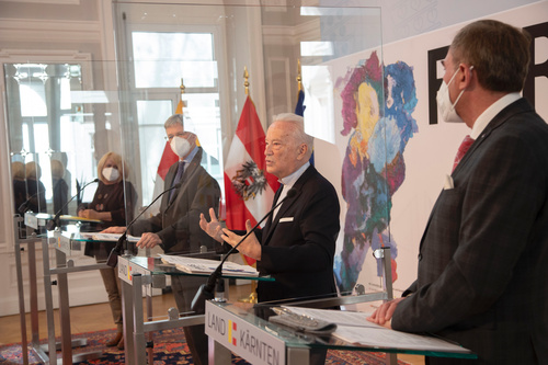 Der Kärntner Landeshauptmann Peter Kaiser hat am Donnerstag in Klagenfurt das Programm der Europäischen Toleranzgespräche 2021 vorgestellt. Mit dabei waren der Vorsitzende des Organisationsvereins Denk.Raum.Fresach, Superintendent Manfred Sauer, der Präsident des Kuratoriums, Hannes Swoboda, und die Vizebürgermeisterin von Villach, Gerda Sandriesser. Die Tolerangespräche finden vor Pfingsten (19. bis 22. Mai) statt und sind dem Thema "Fairness - Die neue Globalisierung" gewidmet.