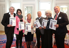 Das Programm der Europäischen Toleranzgespräche 2025 wurde am Dienstag, 18. März, im Spiegelsaal der Landesregierung in Klagenfurt vorgestellt. Im Bild v.l.n.r. Toleranzgespräche-Kurator Wilfried Seywald, Doris Weinelt, Helli Thelesklaf, Kuratoriumspräs. Hannes Swoboda, Margarethe Prinz-Büchl, Superintendent Manfred Sauer.