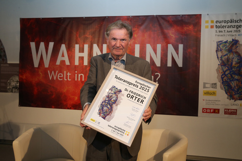Der Europäische Toleranzpreis 2025 für Demokratie und Menschenrechte der Stadt Villach wurde am Donnerstagabend an den langjährigen Kriegsberichterstatter des ORF, Dr. Friedrich Orter, verliehen. Der Europäische Toleranzpreis für sein evangelisches Lebenswerk ging an den Denk.Raum.Fresach-Obmann und Superintendenten Manfred Sauer. Die Verleihung fand im Toleranzmuseum Fresach statt.