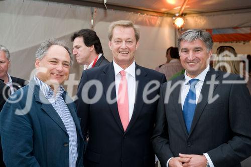 Beschreibung: (c)fotodienst / Christopher Ohmeyer Lang Enzersdorf 28.5.2009 Quester lud seine Kunden zum Spargelfest in die Filiale Langenzersdorf. Etwa 900 Leute fanden sich im großen Festzelt vor der Filiale ein. Foto: Franz Rapf (Baumit Wopfinger), Ulrich Paulmann (Geschäftsführer Quester), Thomas Salat (Baumit Wopfinger)